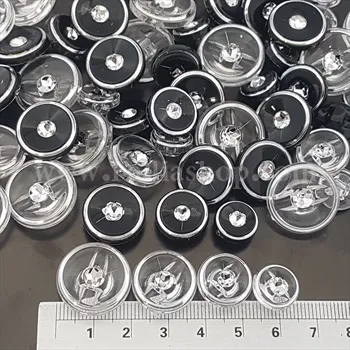 (جعبه شامل هر دو طرح شیشه ای ومشکی می باشد) دکمه از مهم ترین لوازم در هنر خیاطی و صنف خرازی است که به عنوان بست جهت اتصال قسمتهای مختلف لباس استفاده می شود. امروزه اکثر دکمه ها جنبه تزیینی هم دارند که متناسب با رنگ، نوع و مدل پارچه و لباس انتخاب می شوند.