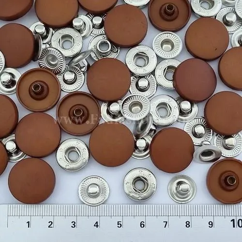 این نوع دکمه از چهار قسمت تشکیل شده ، که دو قسمت در رو و دو قسمت در زیر قرار می گیرد. غالبا برای پارچه هایی با بافت محکم استفاده می شود که در اثر باز وبسته شدن دکمه آسیب نبیند. این نمونه دکمه بادستگاه پرس مونتاژ می شود و هر دکمه قالب مخصوص به خود را دارد.