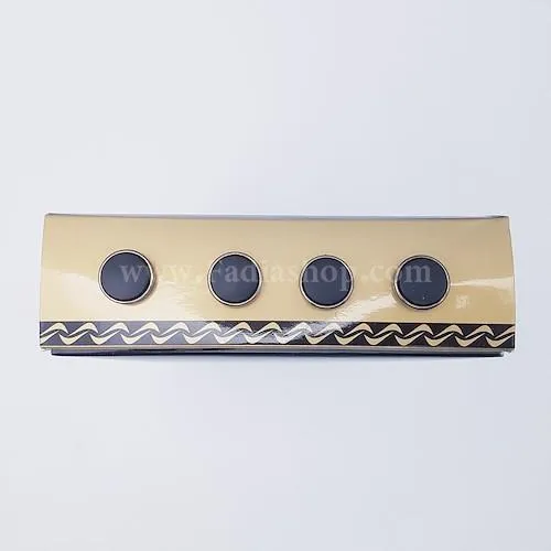 دکمه های پایه دار در قسمت زیری دارای برجستگی u مانند هستند که محل عبور نخ برای دوختن است، از این مدل دکمه برای قسمت های جلوی لباس، آستین و پشت یقه استفاده می شود. دکمه ها فاقد جعبه می باشند.