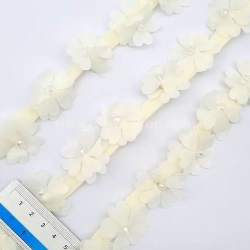 گلهای مرواریدی به عرض 3 سانت و به واسطه نوار باریک پارچه به یکدیگر متصل شده اند و در رنگ های مختلف ارائه می شود. هر متر حدود 30عدد گل دارد.