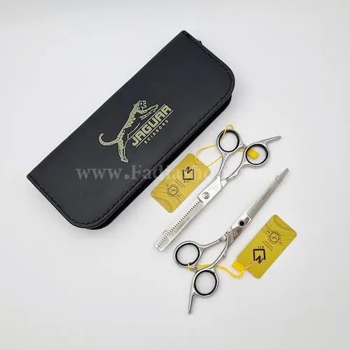 ست قيچي آرايشي حرفه اي پيتاژ و ساده جگوار يکي از برترين ابزارهاي آرايشگري است که با کيفيت بالاي خود، تجربه‌اي متفاوت از کوتاه کردن مو را به شما ارائه مي‌دهد. اين ست شامل دو قيچي حرفه‌اي، يکي براي برش ساده و ديگري براي پيتاژ است که هر دو از جنس فولاد ضد زنگ با تيغه‌هاي بسيار تيز و مقاوم ساخته شده‌اند. طراحي ارگونوميک دسته‌ها به کاهش خستگي دست کمک کرده و رنگ طلايي خاص آن جلوه‌اي شيک و حرفه‌اي به ابزار شما مي‌بخشد.