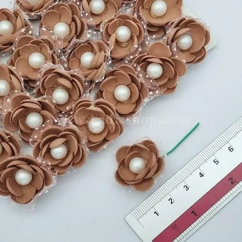 گل فومی کرم گلبهی مات 3 سانتی با مروارید در مرکز و تور در پشت گل، انتخابی زیبا و شیک برای تزیین گیفت، اکسسوری عروس و داماد و انواع دکورو...است. هر بسته شامل 24 عدد است وجنس فوم بسیار لطیف، نرم می باشد و قابل شست وشو است .