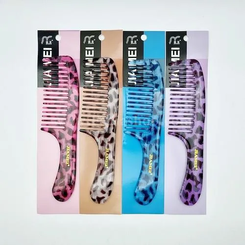 شانه پلاستیکی دسته دار شفاف، طرح پلنگی با طول 20 سانت، عرض 5 سانت، هر بسته شامل 12 عدد در رنگبندی متنوع. انتخابی عالی برای استفاده روزانه و حرفه ای است. سبک و مقاوم بوده، به راحتی موهای بلند و کوتاه را بدون آسیب مرتب می کند.