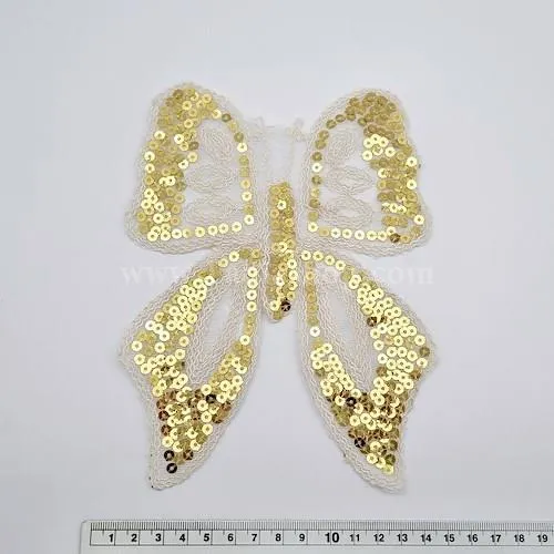 تکه دوزی دوختنی، مدل پروانه پولک دار، از جنس تور سبک و شیک، طول 18.5، عرض 14.5 سانت، مناسب برای دوخت بر روی شومیز، کت، مانتو،کیف، کلاه یا سایر پارچه ها.