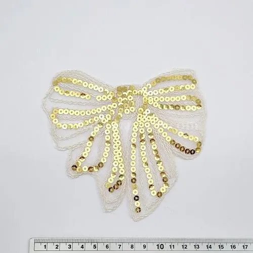 تکه دوزی دوختنی تور پاپیون پولک دار شیری طلایی