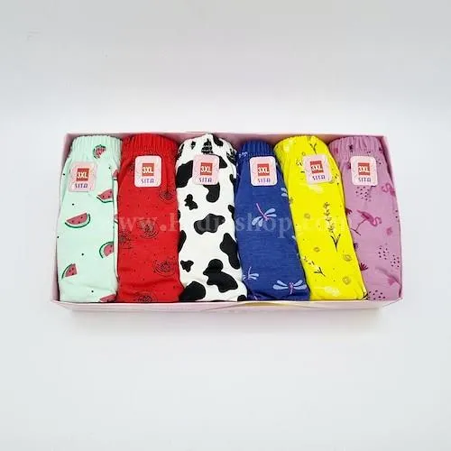 لباس زیرزنانه برند سیتا، سایز XXXL ، هر بسته 6 عدد با رنگ و طرح های متنوع، جنس نخی نرم، تعریق را جذب کرده، انتخابی ایده آل برای استفاده روزانه.