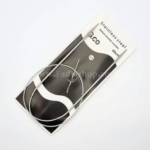 میل بافتنی گرد سیمی، جنس استیل، شماره 3، طول 60 سانت، این میل برای بافت های بدون درز، مانند کلاه، یقه، آستین، شال گرد و لباس نوزاد ایده آل است، سیم منعطف آن مانع گره خوردگی سیم می شود، و از خستگی دست جلوگیری می نماید، باعث انجام بافت یکنواخت تر می شود.