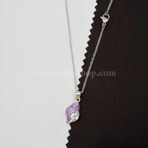 گردنبند جنس فلزی، همراه زنجیر زیبا و پلاک صدف. مناسب استفاده روزمره و حتی مهمانی ها. این گردنبند جلوه ای خاص به استایل شما می بخشد.