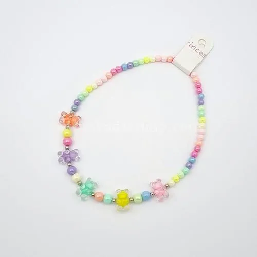 گردنبند مهره رنگی با عروسک های طرح خرس، طول گردنبند 38 سانت، ترکیبی شاد و چشم گیر از رنگ های متنوع و طراحی کودکانه، جلوه ای زیبا و استایلی فانتزی و دخترانه ایجاد می کند.