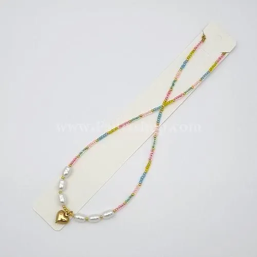 گردنبند منجوق پلاک قلب طلایی رنگی