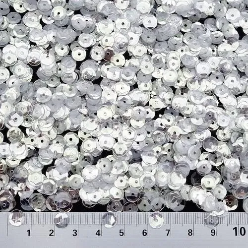 پولک مدل گرد، رنگ سفیدشفاف، با درخشندگی چشم نواز و ظاهر لطیف، انتخابی ایده آل برای تزیین لباس و تاج عروس، دسته گل، کیف، کفش و اکسسوری های مو است. این پولک سبک و براق جلوه ای خاص و درخشان به هر دوخت یا طرح دکوراتیو می بخشد.