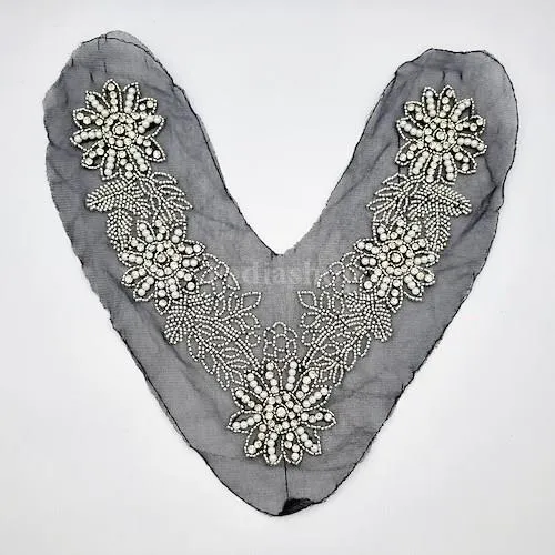 یقه آماده تور منجوق مروارید مشکی نقره ای
