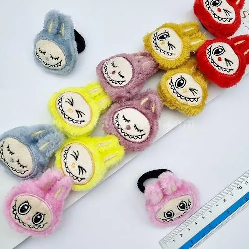 کش مو حوله ای، دارای عروسک لبوبو از جنس خز، در بسته ی 12 عددی، مناسب برای دختران شاد و خاص پسندکه دنبال استایل فانتزی و لطیف هستند.
