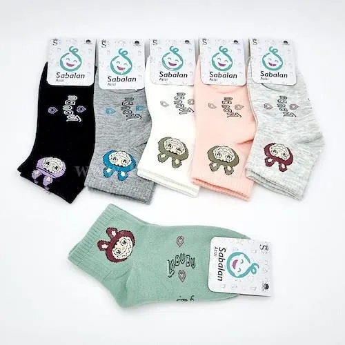 جوراب نیم ساق دخترانه، برای سن 7 تا 9 سال، بسته 12 جفتی، از جنس نخ، برند سبلان، با طرح عروسکی لبوبو، مناسب مدرسه، فعالیت روزانه.