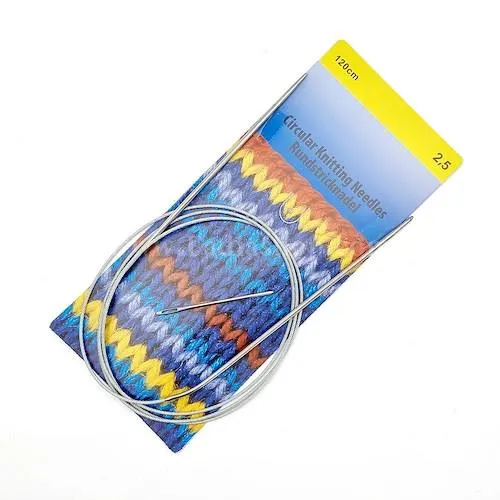 میل بافتنی گرد سیمی، سایز 2.5، طول سیم 120 سانت، بسته 12 عددی، انتخاب عالی برای بافت های بدون درز و با عرض وسیع است، بافتی یکنواخت و راحت برای شال، یقه، کلاه یا پانچوی حرفه ای فراهم می سازد.