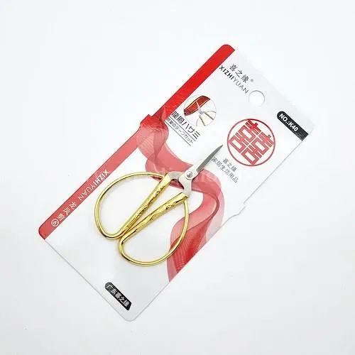 قیچی طلایی مدل K40، با تیغه کوچک، طول تیغه حدود2 سانت، سر تیز، برای بریدن سنگ متری، پارچه یا نمد، دسته فلزی آب کاری طلایی آن نه تنها ظاهری لوکس به میز کار شما می بخشد، بلکه با عملکرد بالا و تیغه چندمیلی متری، برش های دقیق و تمیز را ممکن می سازد.