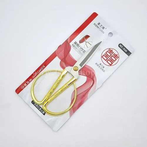 قیچی طلایی مدل K45، با تیغه کوچک، طول تیغه حدود7 سانت، سر تیز، برای بریدن سنگ متری، پارچه یا نمد، دسته فلزی آب کاری طلایی آن نه تنها ظاهری لوکس به میز کار شما می بخشد، بلکه با عملکرد بالا و تیغه چندمیلی متری، برش های دقیق و تمیز را ممکن می سازد.