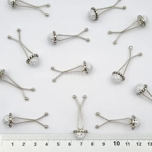 گیره روسری دوشاخی نگین دار نقره ای