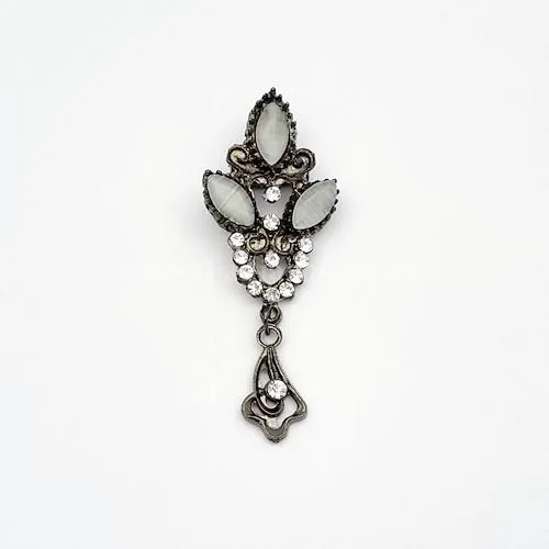 گل سینه نگین دار، مدل آویزدار، با طراحی ظریف و ساختار مقاوم، یکی از جذاب ترین اکسسوری های زنانه برای تکمیل استایل مجلسی و رسمی است، بدنه ی این گل سینه از جنس فلز و پشت آن سنجاق محکم دارد که به راحتی روی انواع لباس، شال یا مانتو نصب می شود.