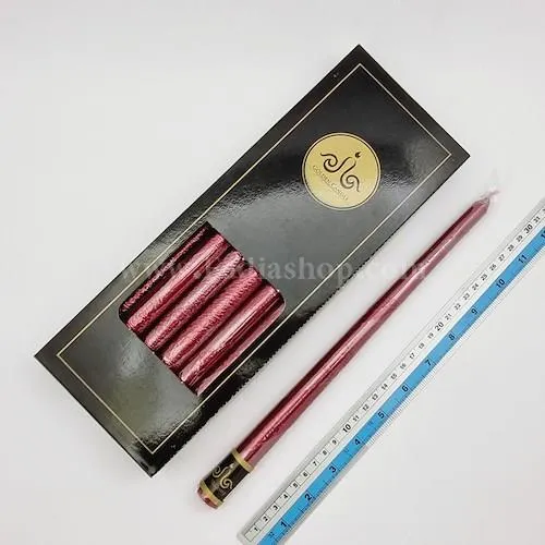 شمع متالیک یا شاین دار، قطر حدود 2 سانت، طول حدود 30 سانت، انتخابی شیک و درخشان برای تزیین جشن ها و فضاهای خاص است، هر بسته شامل 12 عدد شمع بلند براق بوده که جلوه ای لوکس و خاص به دکور شما می بخشد.