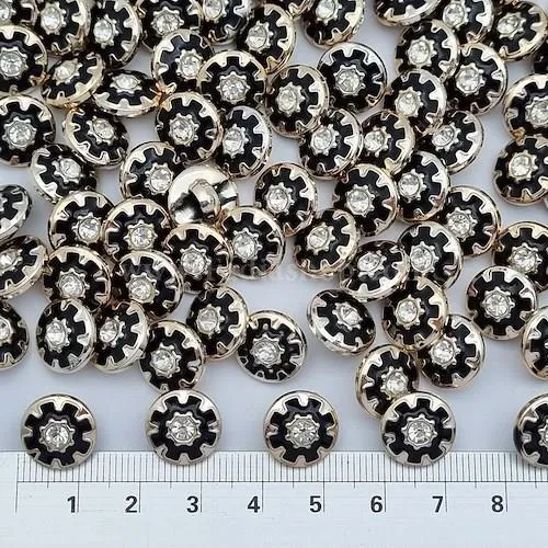 دکمه پایه دار شومیزی نگین دار 18 مشکی طلایی