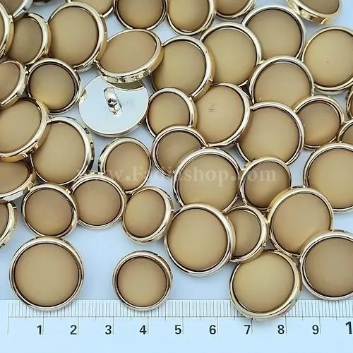 دکمه پایه دار با دور طلایی، در دو سایز، انتخابی ایده آل برای مانتو، شومیز، پیراهن، است، پایه دار بودن، دوخت سریع و محکم را تضمین می کند و رنگ طلایی آن جلوه ای لوکس به لباس می بخشد.