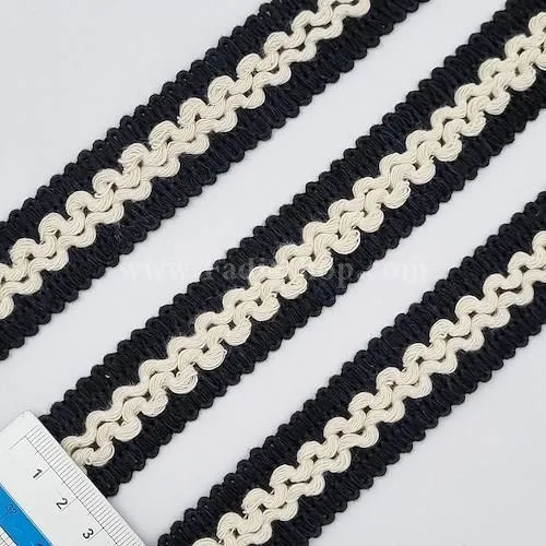 نوار لباس تزئینی، طرح بافت موج شکل، عرض 2.8 سانت، طول 25 متر، این نوار طرح بافت قابل استفاده برای لبه دوزی یقه، آستین، حاشیه دامن و تزئینات لباس مجلسی است.