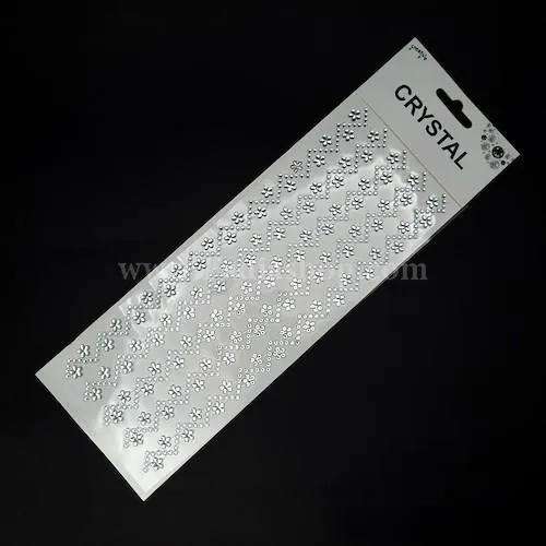 نگین چسبی تزئینی، با پشت خودچسب قوی و طراحی براق، به راحتی بر روی لباس، کیف، کفش، گوشی یا حتی پوست و مو می چسبد و جلوه ای درخشان و حرفه ای به استایل شما می بخشد، 5 ردیف در هر برگ و هر ردیف تعداد 20 عدد گل 5 پر همراه حاشیه زیگزاک.