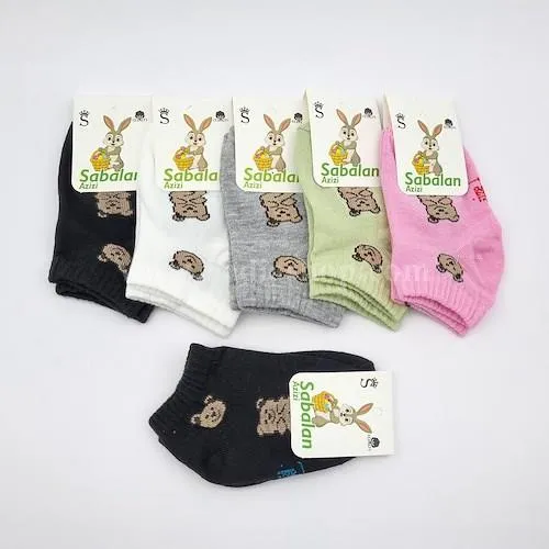 جوراب نوزادی، هر بسته 12 جفت، طرح خرس، جنس نخی، این نمونه جوراب تا مچ پای نوزاد را پوشش می دهد، دارای کش نرم بدون فشردگی.