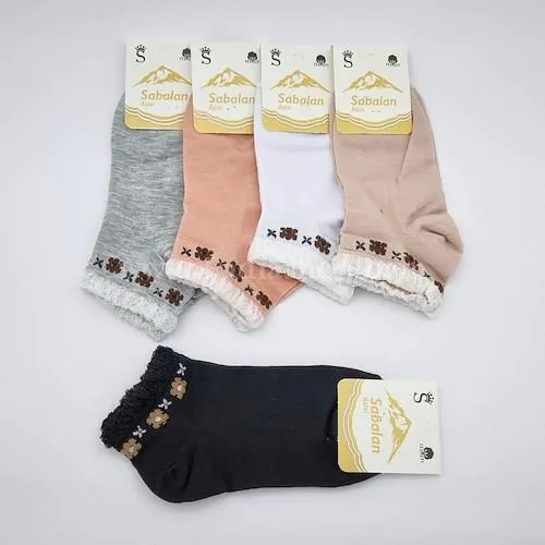 جوراب زنانه مچی نخی، نرم، لبه طرح دار، سبک و خنک که پا را در تمام طول روز راحت نگه می دارند. رنگبندی متنوعشان، انتخابی عالی، برای ست کردن با هر لباسی و انواع کفش های، کتونی، اسپرت، بوت های نیم ساق تابستانی است.
