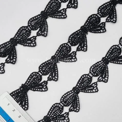 نوار لباس تورگیپور تزیینی، عرض 3 سانت، طول حدود9متر، با طرح پاپیون دنباله دار، انتخابی ایده آل برای تزیین لباس مجلسی، مانتو، کت. حاشیه لباس، شال، روسری.