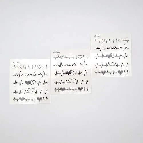 برچسب تاتو ضربان قلب، در هر برگ 5 عدد طراحی ضربان قلب به رنگ مشکی که به صورت موقت روی پوست چسبیده و جلوه ای شبیه تتوی واقعی دارد. مناسب مهمانی، فشن یا استفاده روزمره.