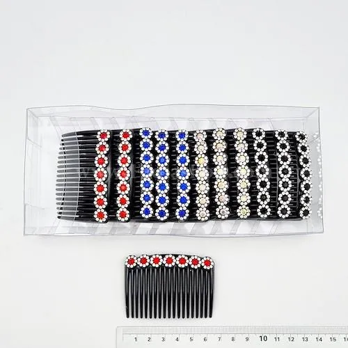شانه مو زنانه نگین داررنگی، 12 عددی، طول 6.5، عرض 4.5 سانت، انتخابی ایده آل برای مرتب کردن، تزیین و جلوه دادن به موی بانوان، این شانه ها با طراحی زیبا و نگین های درخشان، نه تنها موی شما را مرتب می کنند، اکسسوری شیک برای استفاده روزمره یا مجالس می باشد.