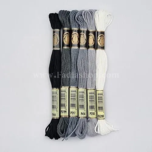 نخ گلدوزی برند پنگوئن شامل 6 کلاف، هر کلاف 8 متراست، که هرکلاف ازرشته هایی با تونالیته رنگی تشکیل شده، یعنی نخ تک رنگ نیست و طیف رنگی ملایمی دارد. این ویژگی باعث ایجاد سایه روشن طبیعی روی طرح گلدوزی می شود و جلوه ای زیبا و حرفه ای دارد.