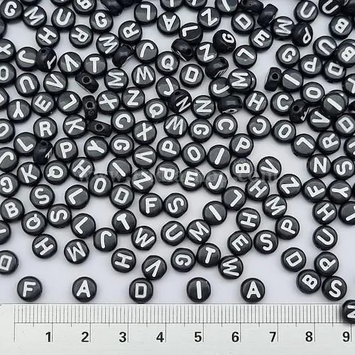مهره گرد تخت حروف انگلیسی مشکی با حروف سفید، گزینه ای ایده آل برای ساخت دستبند، گردنبند و اکسسوری های شخصی سازی شده است. بسته 50 گرمی شامل حدود 380 مهره با حروف مخلوط بوده و برای پروژه های خلاقانه و ساخت نام ها و پیام های کوتاه بسیار کاربردی است.