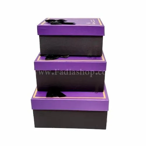 جعبه مقوایی هارد باکس طرح مستطیل، سایز بزرگ12.5، 20.5، 25 سانت، متوسط 23.5، 19، 11.5 سانت، کوچک 22، 17، 10.5 سانت، بدنه مشکی با پاپیون رنگی شیک که مناسب هدیه های لوکس برای مهمانی ها، مناسبت ها و هدایا است، و جلوه ای خاص به بسته بندی شما می دهد.