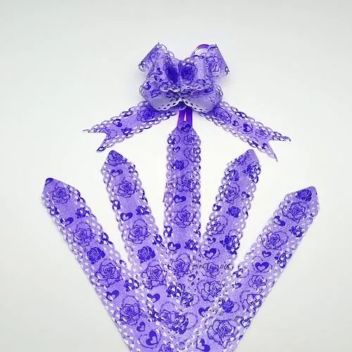 با کشیدن نخ باریک موجود بر روی روبان ، روبان جمع شده و شکل گل میگیرد که می توان روی سطح موردنظر مونتاژ کرد.
