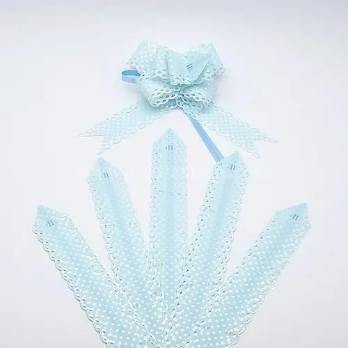 با کشیدن نخ باریک موجود بر روی روبان ، روبان جمع شده و شکل گل میگیرد که می توان روی سطح موردنظر مونتاژ کرد.