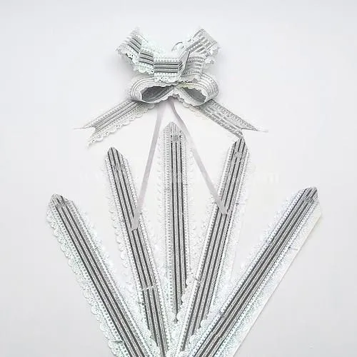 با کشیدن نخ باریک موجود بر روی روبان ، روبان جمع شده و شکل گل میگیرد که می توان روی سطح موردنظر مونتاژ کرد.