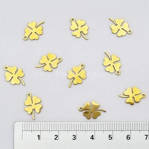 خرج کار یا آویز طرح گل شبدر، جنس استیل، طول 1.6 سانت، عرض 0.5 سانت، در بسته 10 عددی، انتخابی مقاوم، سبک، برای ساخت دستبند، گردنبند، زیورآلات دست ساز محسوب می شود، این خرج کار استیل، جلوه ای ظریف و خاص به دستبند، گردنبند و اکسسوری های تزئینی می دهد.