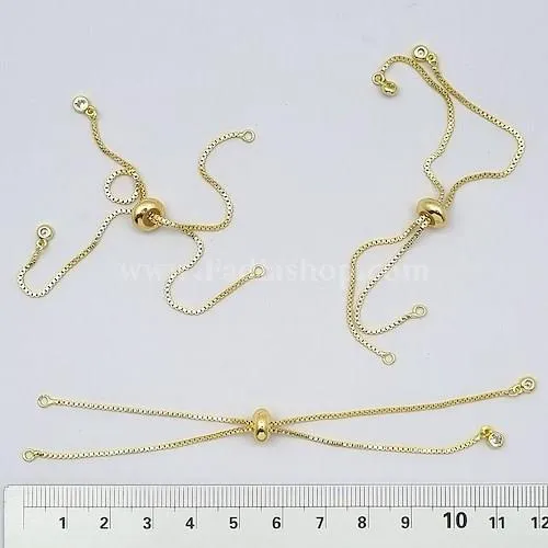 خرج کار بند دستبند مدل آسانسوری یا کشویی، طول حدود 11 سانت، عرض حدود 1 میل، هر بسته 3 عددی، قطعه اتصالی فلزی، که امکان تنظیم طول بند به صورت کشویی را می دهد و باعث راحتی در پوشیدن و جداکردن دستبند می شود. برای ساخت و طراحی انواع زیورآلات مناسب است.