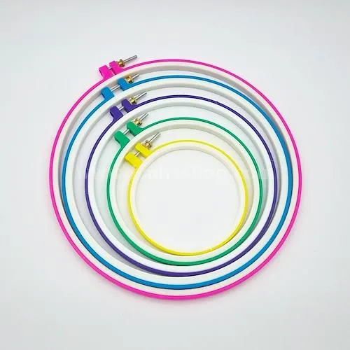 کارگاه گلدوزی پلاستیکی در 5 سایز 12، 15.5، 19، 23 و 26 سانت، با رنگ بندی متنوع، گزینه ای سبک و کاربردی برای ثابت نگه داشتن پارچه هنگام گلدوزی است که دقت، سرعت و کیفیت دوخت را افزایش می دهد.