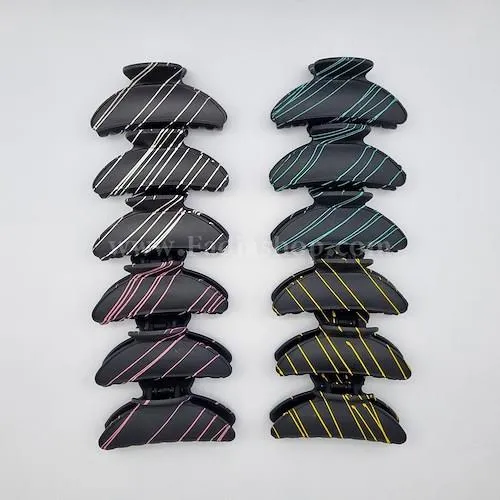 کلیپس سر، طول 9 سانت، مشکی رگه دار، بسته 12 عددی، کاربردی با طراحی مستحکم، مناسب استفاده روزمره، جمع کردن و آرایش موها در استایل های مختلف، با نگهداری آسان، ظاهری شیک و جمع وجور برای بانوان.