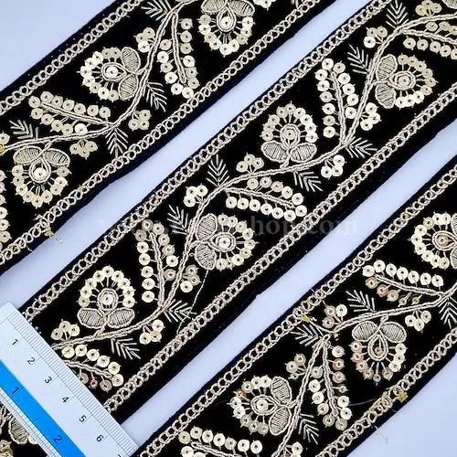 نوار تزئینی گلدوزی با پولک های ریز، با ابعاد عرض 6 سانت، طول 9 متر، انتخابی شیک برای خرج کار لباس، مانتو، کیف و لوازم تزئینی، به سادگی دوخته می شود تا جلوه ای منحصر به فرد ایجاد کند.