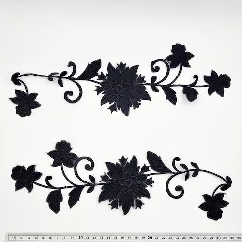 اپلیکه گلدار، طول 29 سانت، عرض 10 سانت، مناسب دوخت روی مانتو، شومیز یا تزئین لوازم دستی، دو جفت ارائه می شود، جلوه ای سه بعدی ایجاد می کند و باعث می شود حتی ساده ترین لباس ها نیز حالتی لوکس، خاص و چشم نواز پیدا کنند.