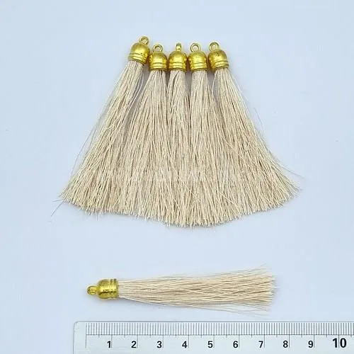 منگوله نخ دار تزیینی به صورت آویزی است که آن را به شکل رشته و گلوله درست می کنند، طول حدود 7.5 سانت، دارای حلقه اتصال می باشد، که می توان برای تزیینات پارچه ای و ساخت زیور آلات به راحتی استفاده نمود.