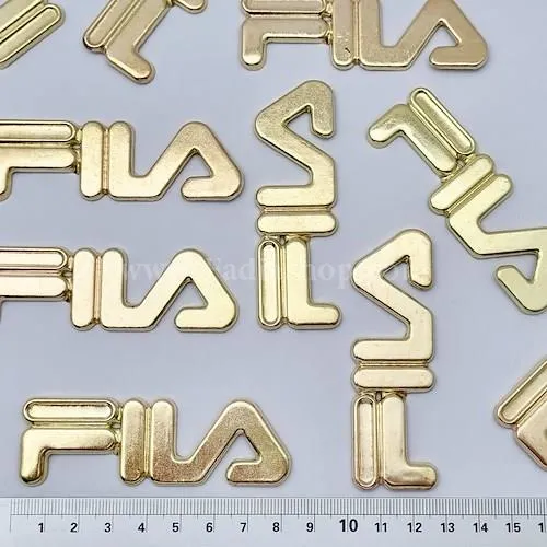 مارک فلزی چسباندنی فیلا، طول 8سانت، عرض 2.7 سانت، حدود 10 عدد، انتخابی لوکس و کاملاً کاربردی برای تزئین کیف، کفش، پوشاک و لوازم جانبی است.