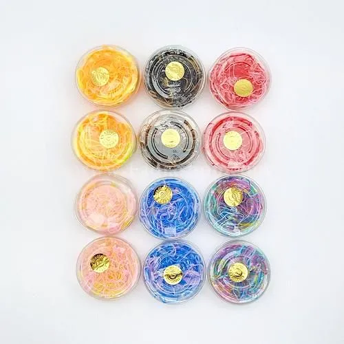 هر بسته شامل 12 بسته طلقی گرد کوچک، که هر کدام حدود 130 عدد می باشد، نوعی کش پلاستیکی و باریک است و دارای خاصیت کششی است، معمولا برای بستن انتهای موها و جدا کردن موها از آن استفاده می شود، می توانید مدل های مختلفی را به کمک آن روی موهای خود ایجاد کنید.