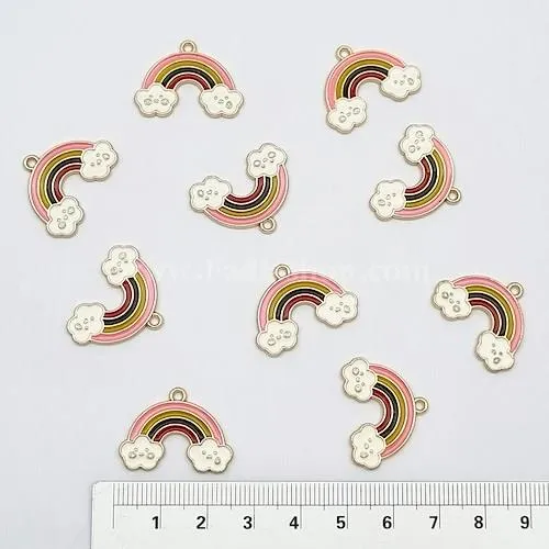خرج کار یا آویز طرح رنگین کمان، جنس فلزی، طول 2.5 سانت، عرض 2 سانت، در بسته 10 عددی، انتخابی مقاوم، سبک، برای ساخت دستبند، گردنبند، زیورآلات دست ساز محسوب می شود، این خرج کار جلوه ای ظریف و خاص به دستبند، گردنبند و اکسسوری های تزئینی می دهد.