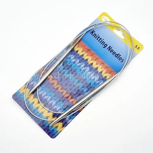 میل بافتنی گرد سیمی، سایز5.5، طول سیم 120 سانت، بسته 10 عددی، انتخاب عالی برای بافت های بدون درز و با عرض وسیع است، بافتی یکنواخت و راحت برای شال، یقه، کلاه یا پانچوی حرفه ای فراهم می سازد.
